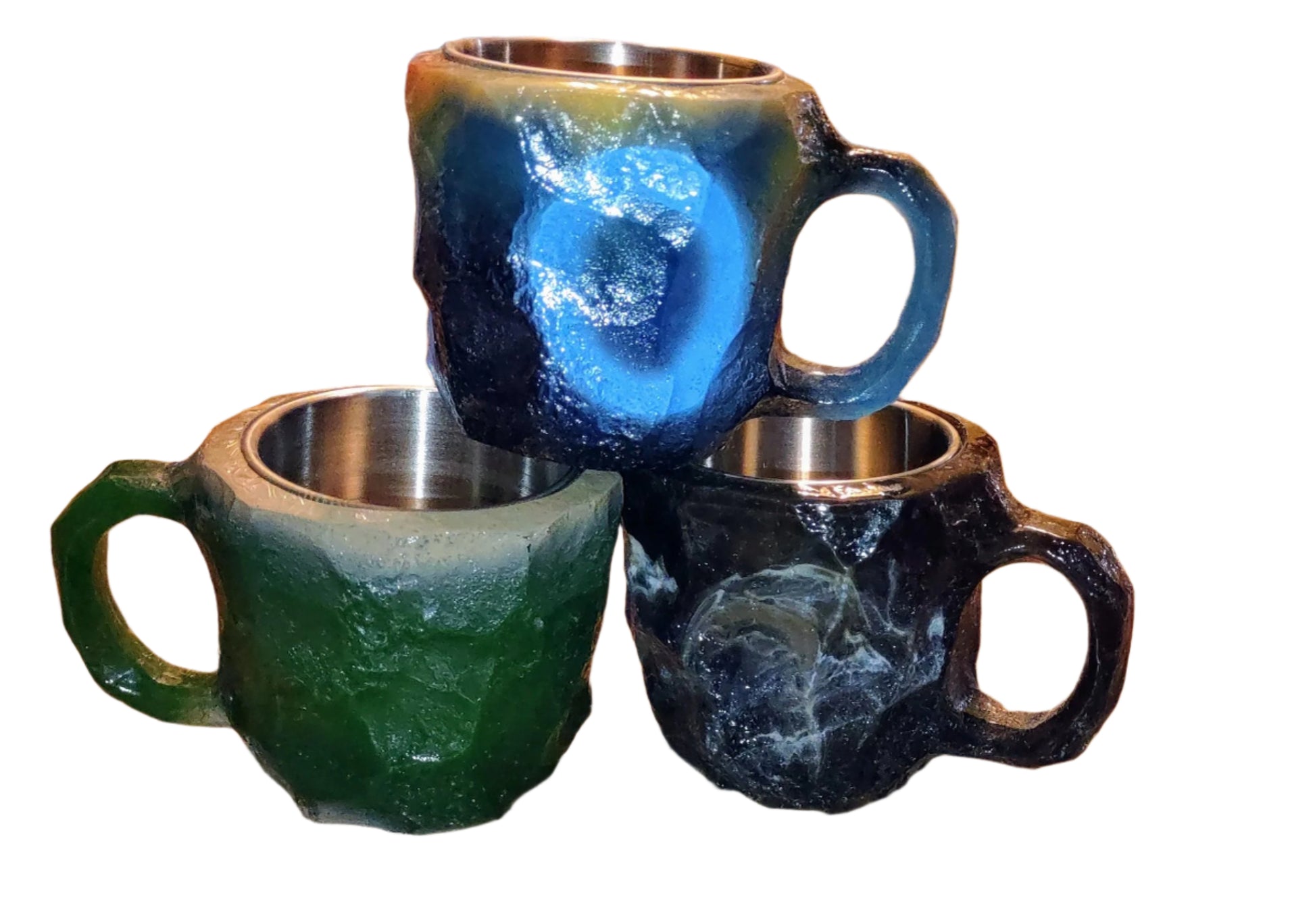Mineral Natural Crystal Mugs with stainless steel liner.